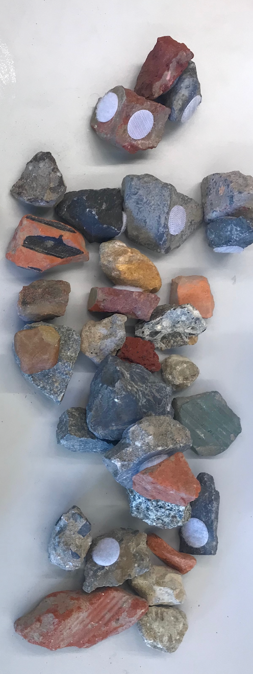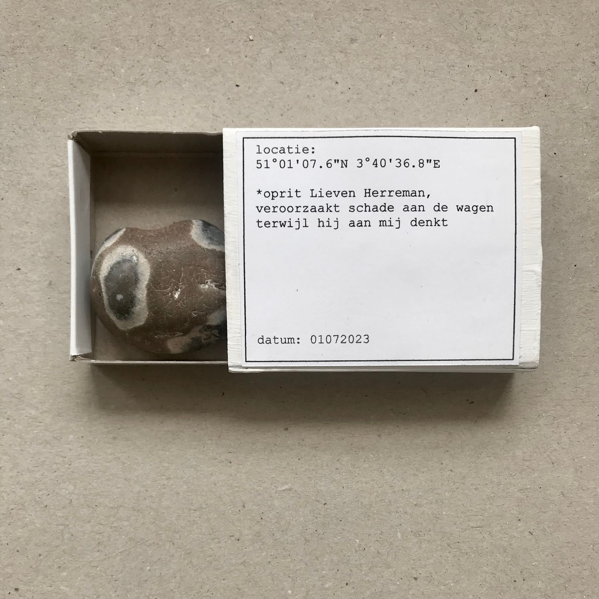 Driven by a special rational curiosity in almost everything she does, she questions the world and silently writes down all the answers in a huge imaginary notebook to which only she has access. Without revealing too much (perhaps she is the stone). She likes to leave that to others. Her affection therefore rests with people who dare to name things, as if she wants to embrace what touches her, even what hurts her. In the way she deals with people and things, her attention and love permeates gently, patiently and even vulnerably. The stone comes in countless shapes and colors.'