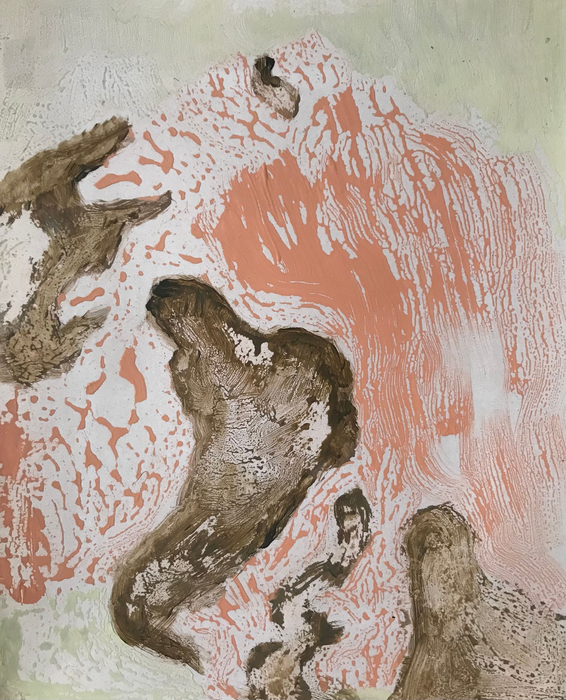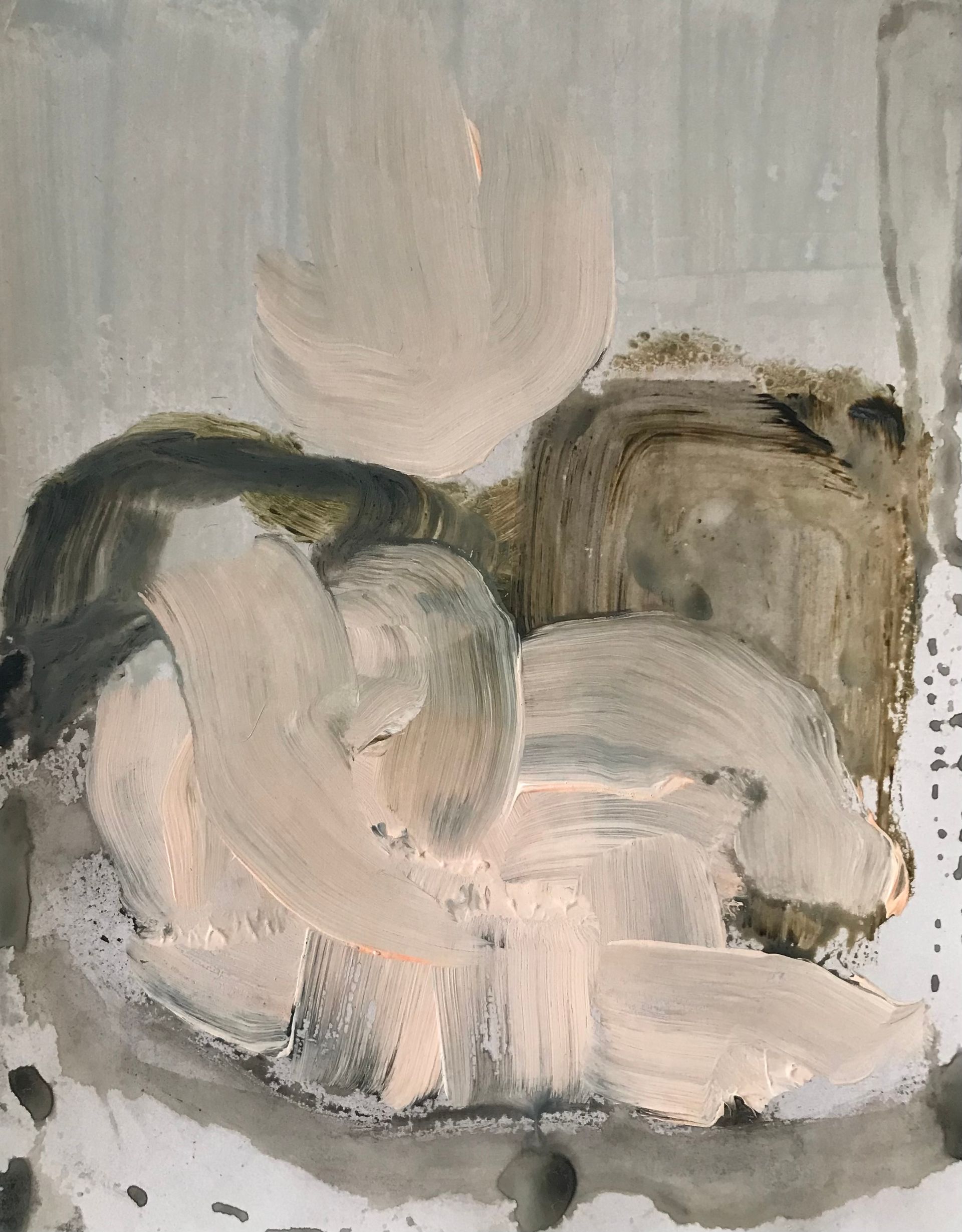 '...Her paintings exudes the same sense of distance, or perhaps better, the hesitation to name. Why does her image falter and fall apart, is it affected, vulnerable and unfinished? Perhaps the truth lies precisely in the stubborn drops on the canvas, in the light that breaks through the streaks of paint, through cracks as if they were scars. In the messy images of fragments of indeterminate memory, in which the colors may only be color, hesitantly. The scraped texture of the painting feels like the peeling of skin on which drops echo on the canvas after the passage of the paint brush. Everything exudes hesitation or is it really a conscious letting go of too strict control over the image?