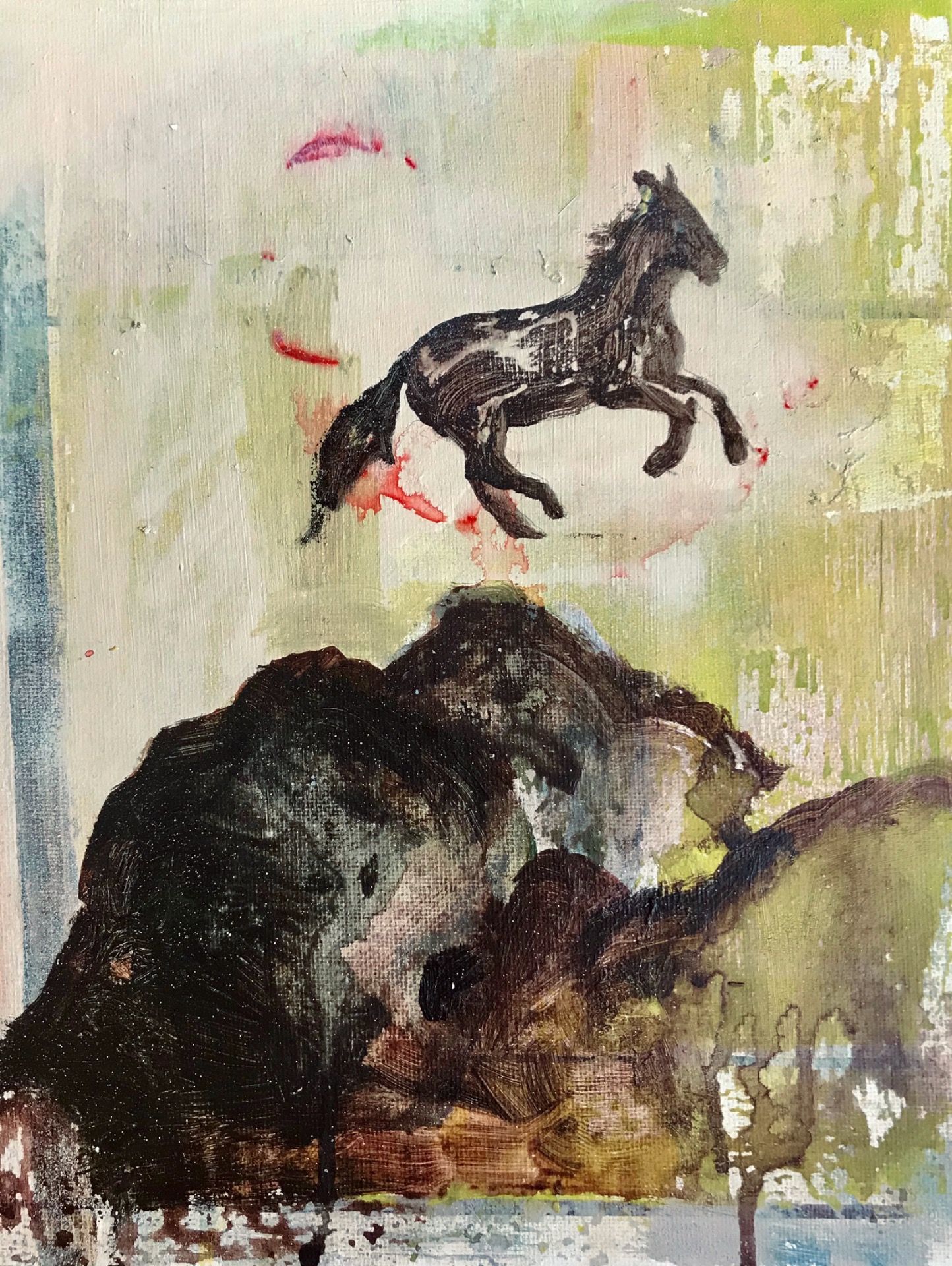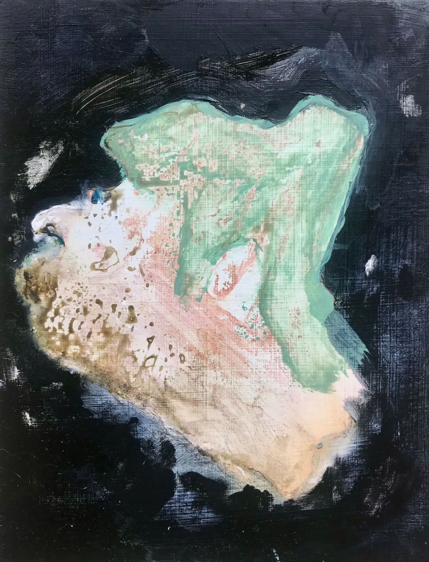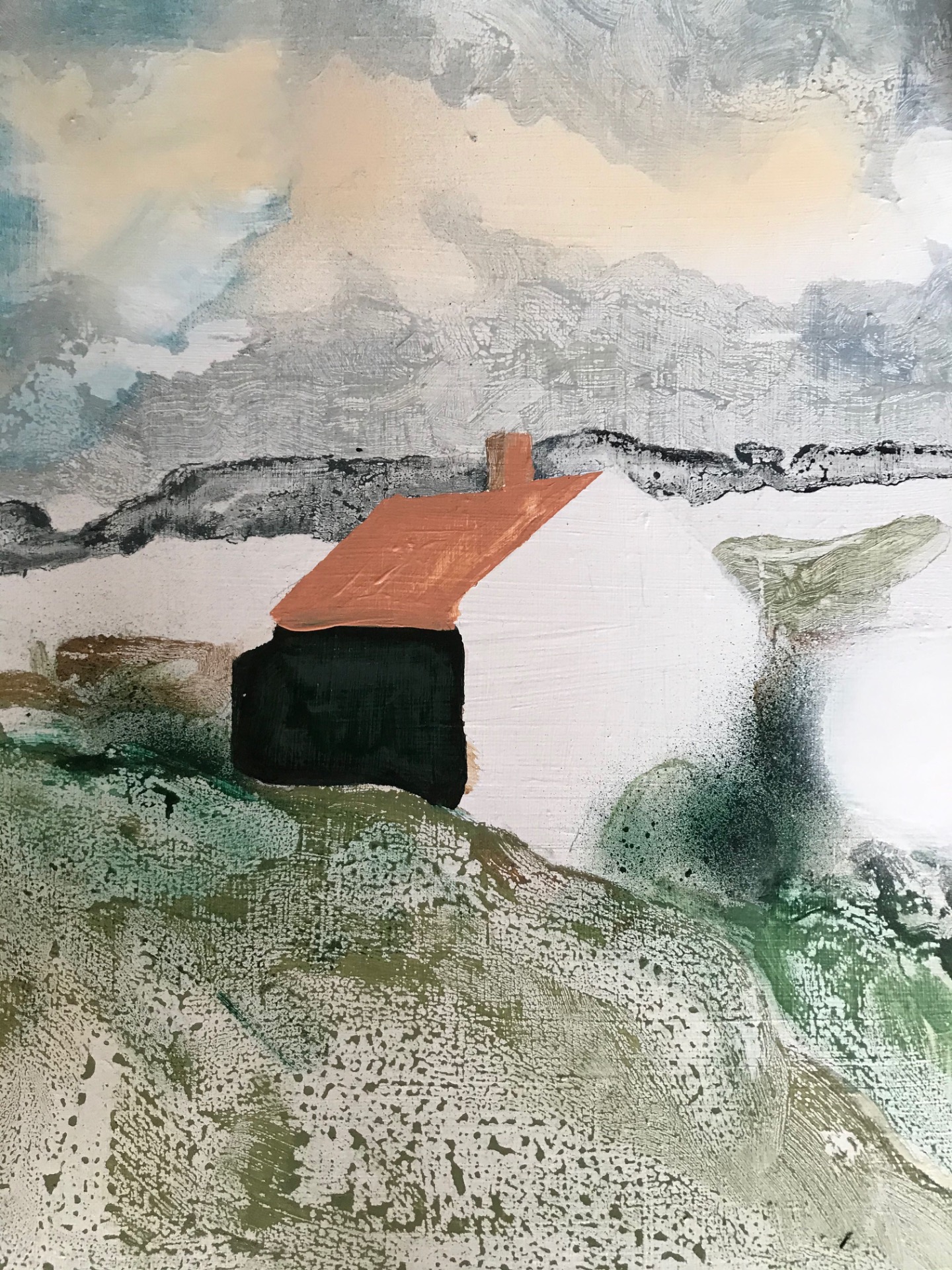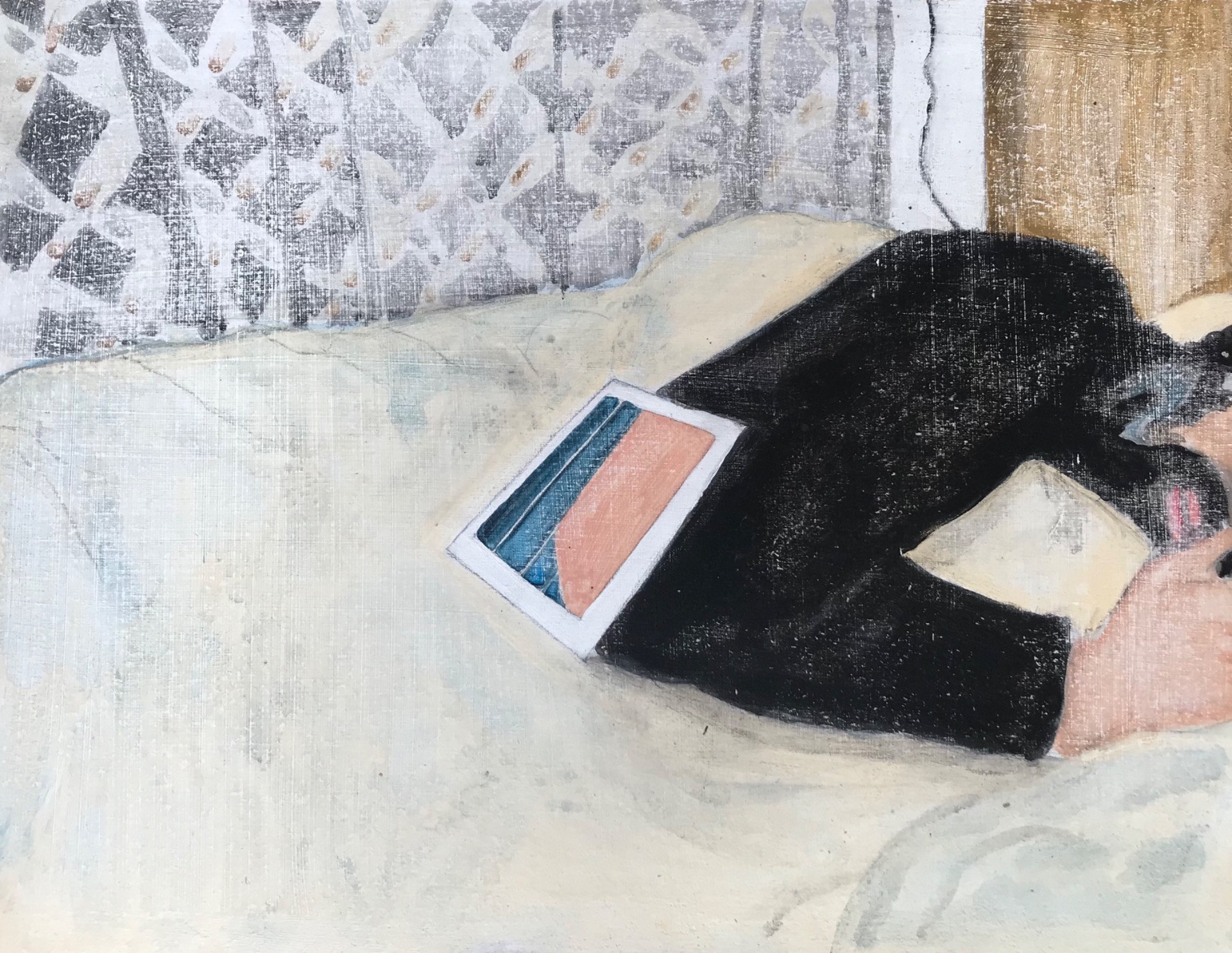 Fade in to you, 2026 — mixed media on wood panel, 19 × 33 cm