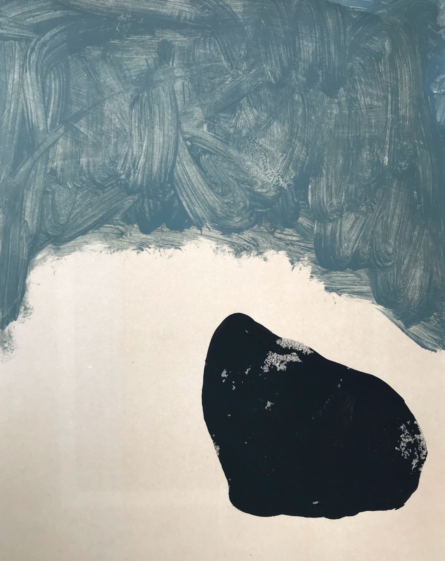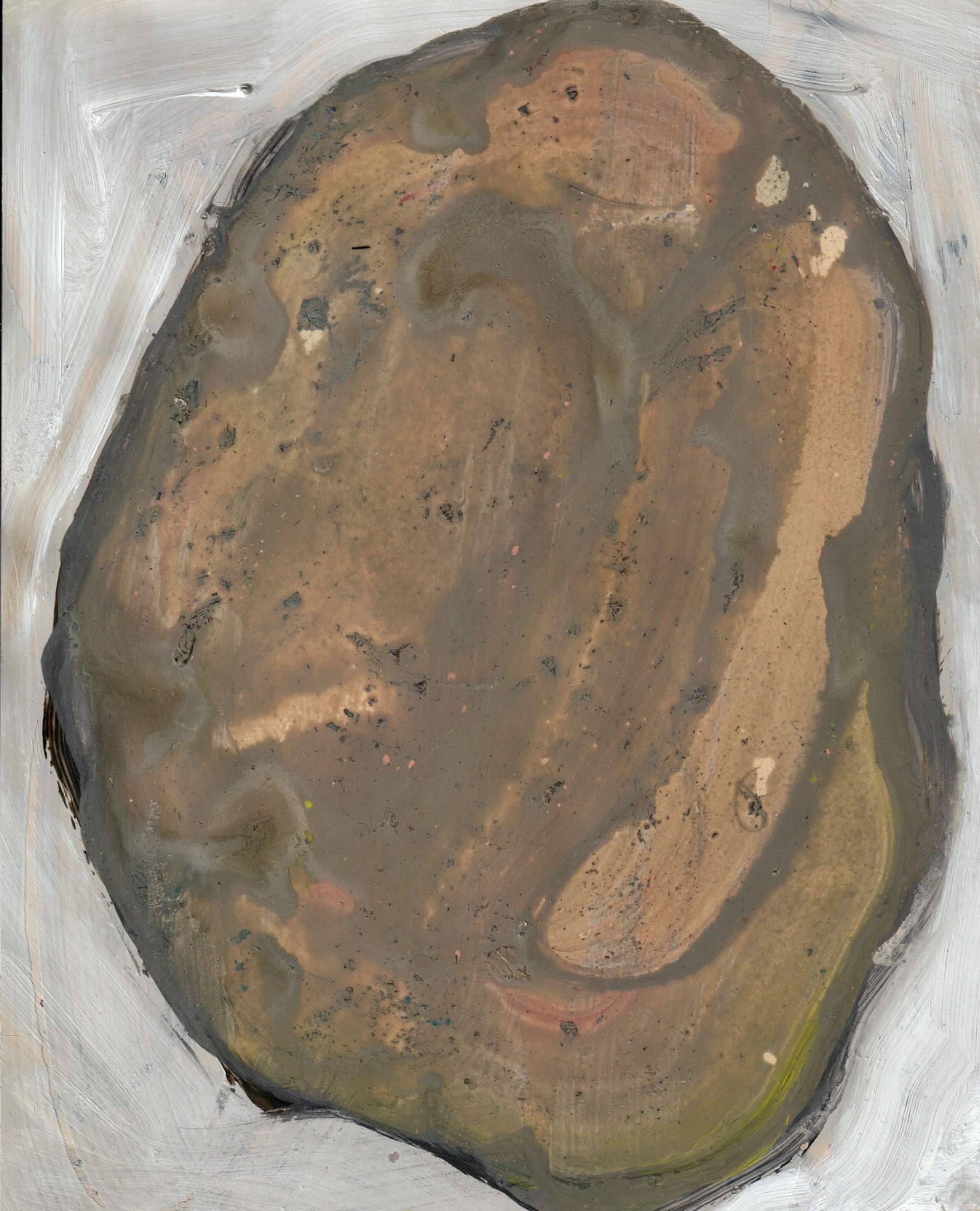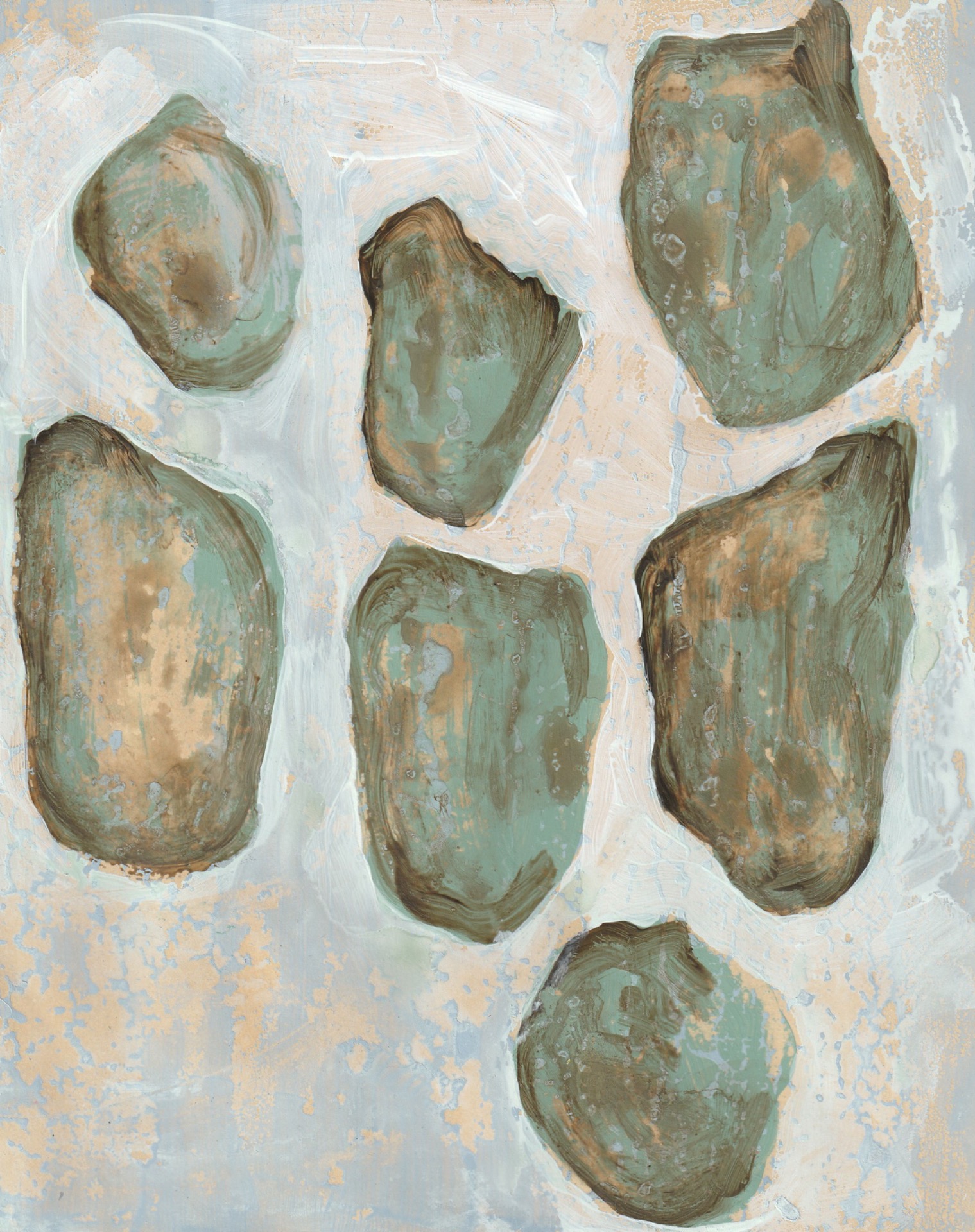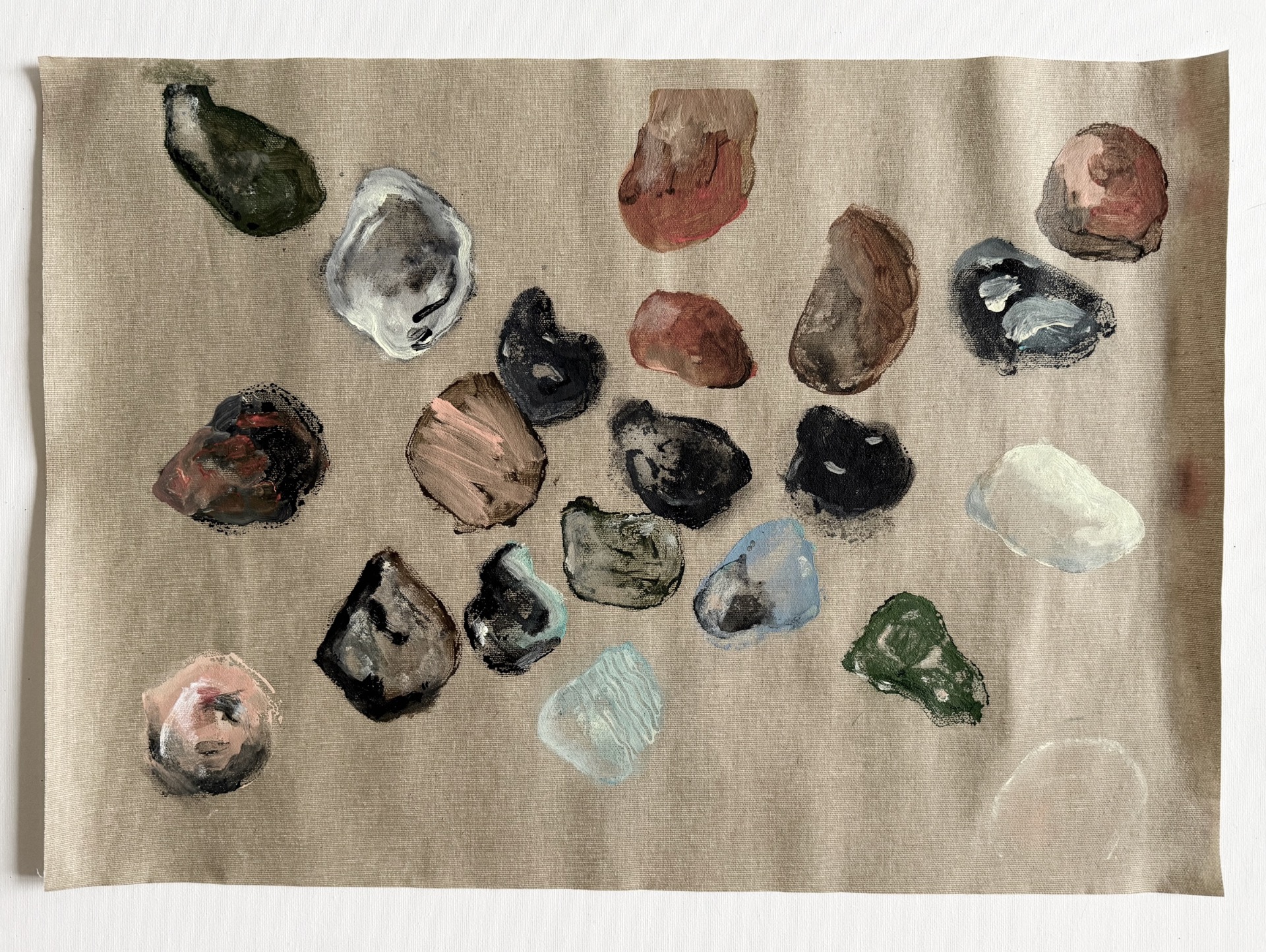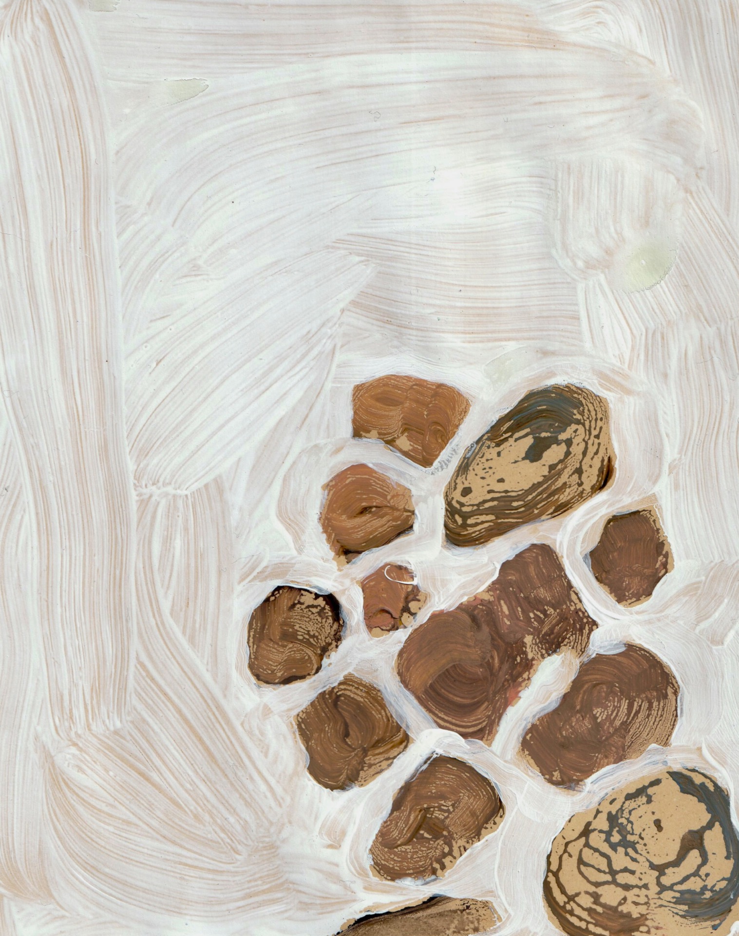 '...The hermetic nature of the stone is particularly fascinating. Each stone is in itself nothing other than itself. That provides something to hold on to that you can cherish and propagate. That's why you would think that the solidity of the stone would be recognizable in paintings and images that Lizzy makes of it. But nothing is less true.Her work radiates delicacy and vulnerability, the pebbles are multi-colored and have porous skin, just like her other works. Life and vulnerability shine through. She seems to want to contrast the unwavering character of what a rock stands for with security and empathy.'