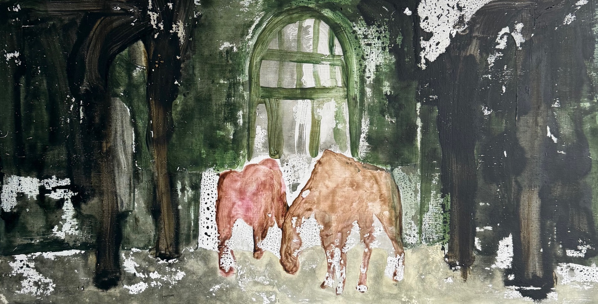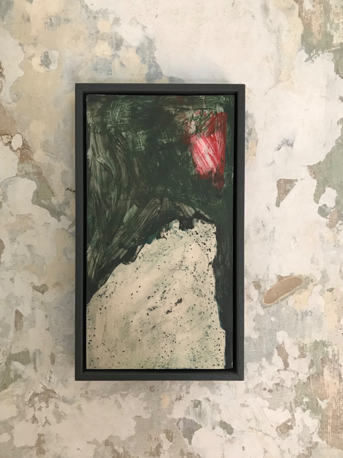 Pondering, stand by, 2025 — mixed media on wood panel, 61 × 32 cm