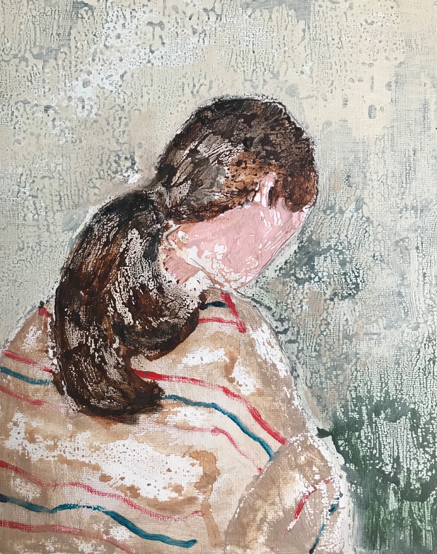 On the cupboard, 2025 — mixed media on canvas, 61 × 32 cm