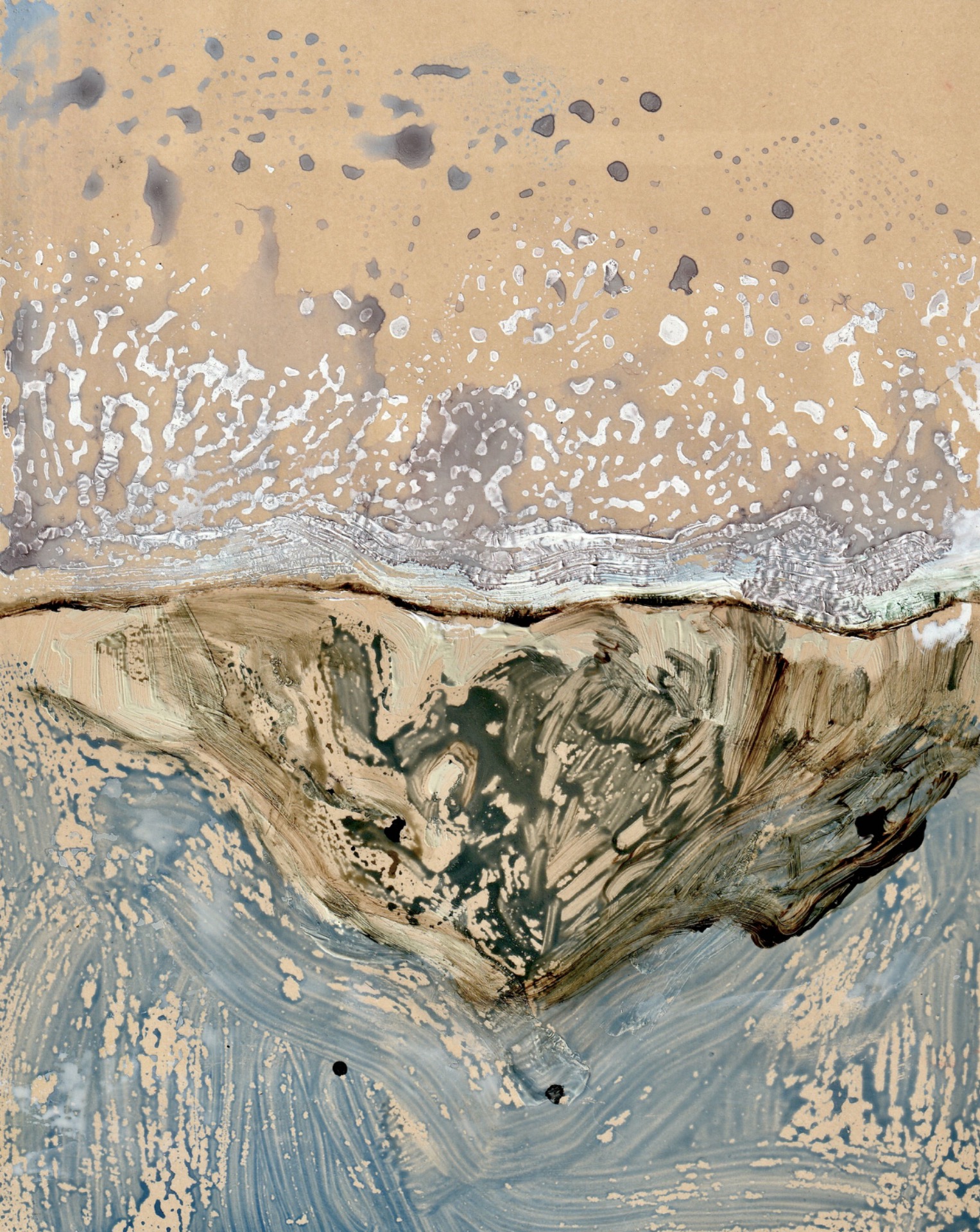 The work of wind, 2025 — mixed media on paper, 40 × 32 cm
